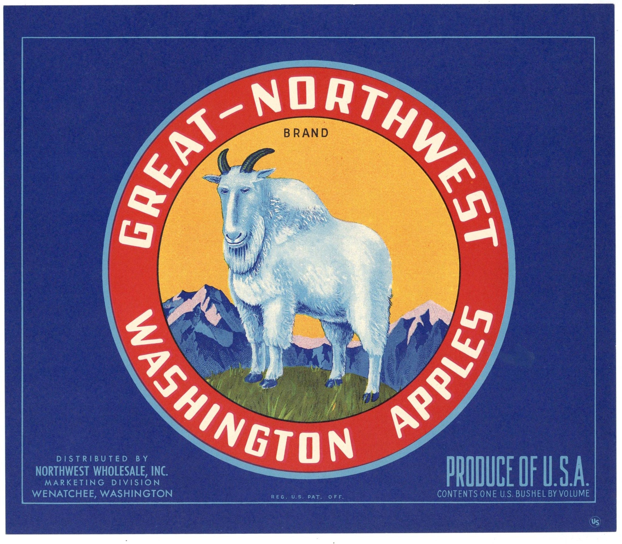Great Northwest Brand Vintage Wenatchee Washington Apple Crate Label, blue