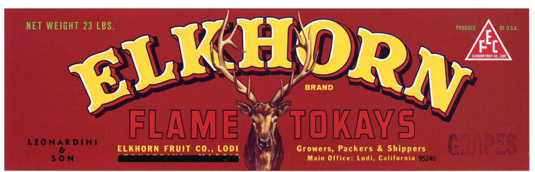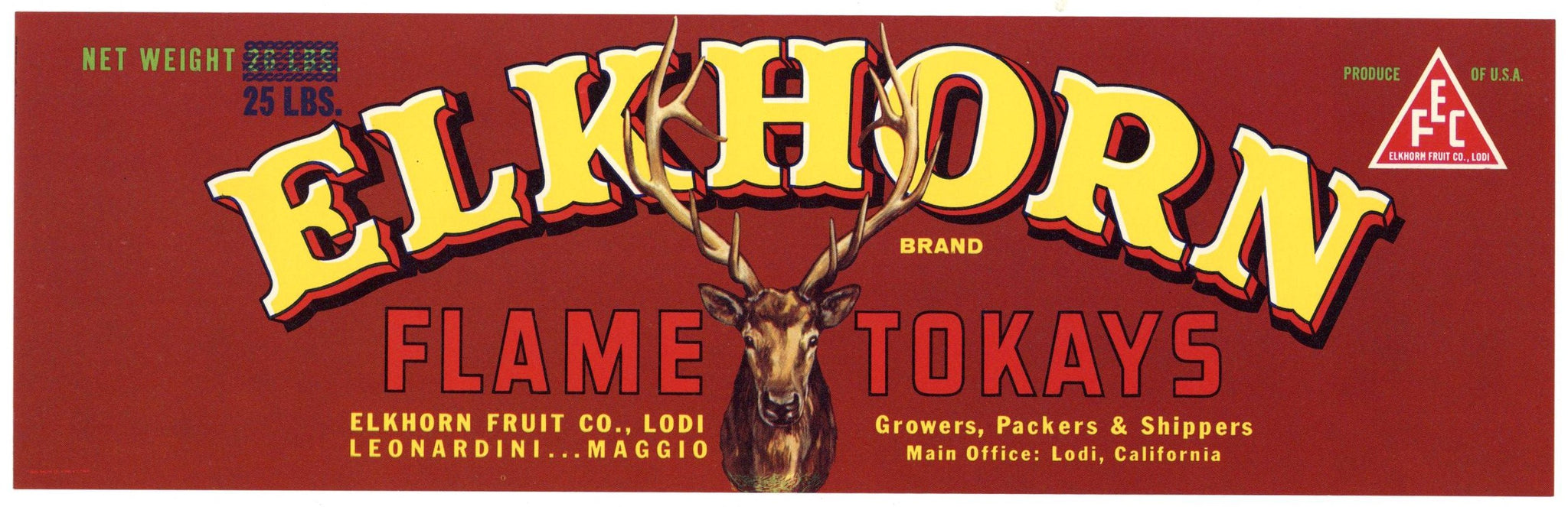 Elkhorn Brand Vintage Lodi California Grape Crate Label, Tokay, 25 lbs, op