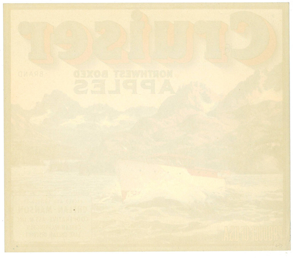 Cruiser Brand Chelan Washington Apple Crate Label, Lake Chelan