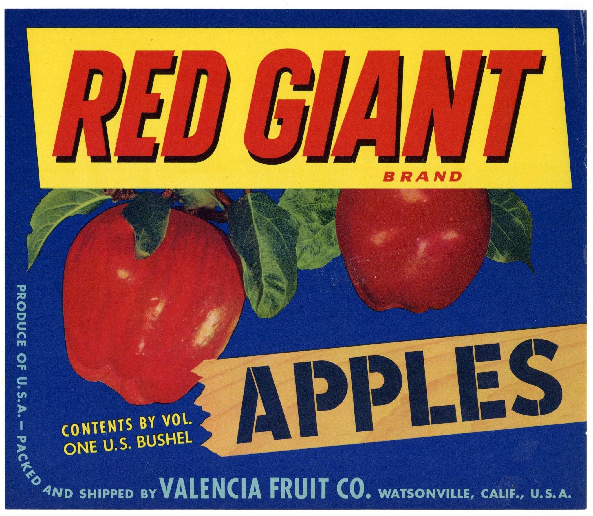 Red Giant Brand Vintage Watsonville California Apple Crate Label