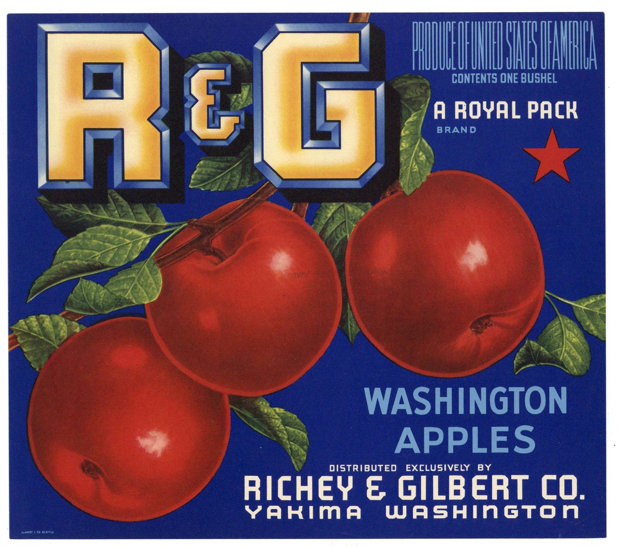 R & G Brand Vintage Yakima Washington Apple Crate Label