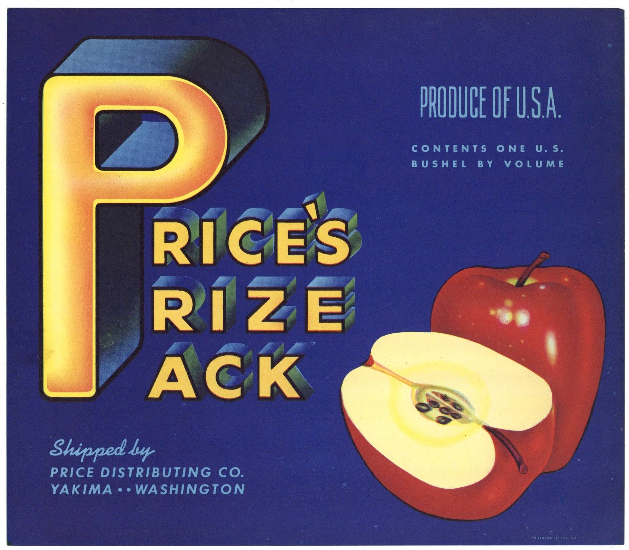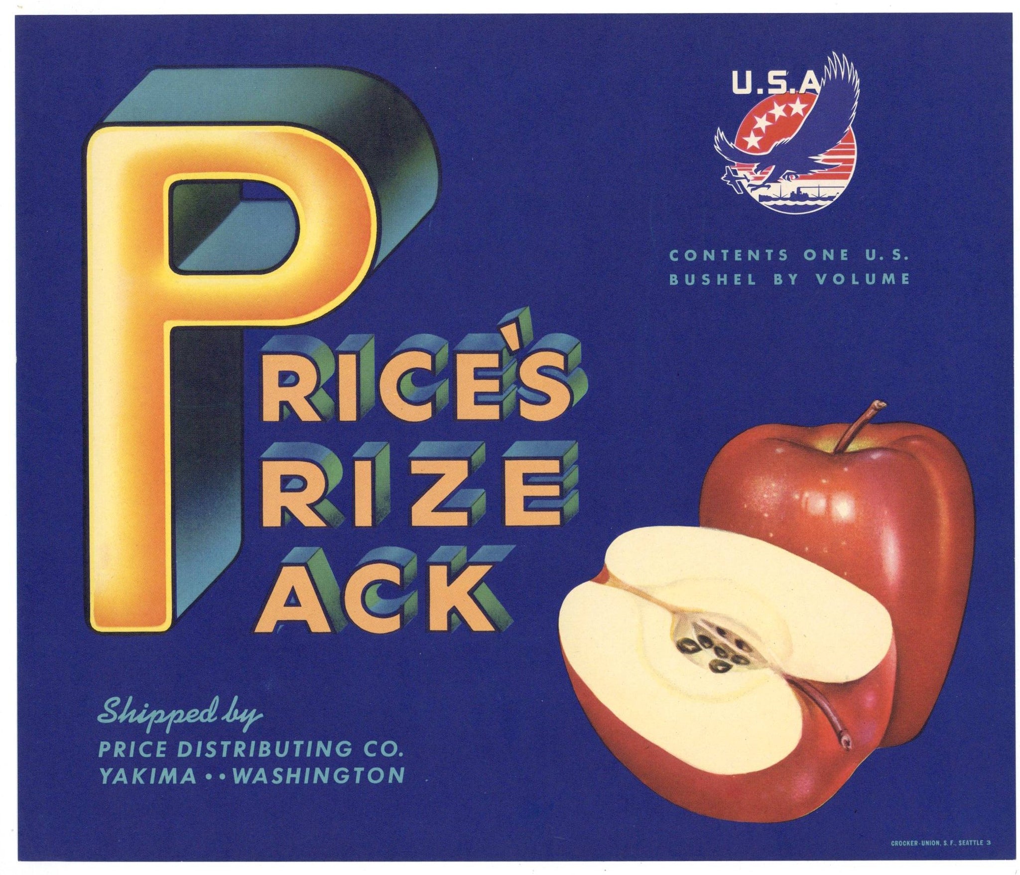 Price's Prize Pack Brand Vintage Yakima Washington Apple Crate Label
