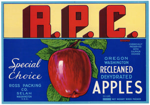 R. P. C. Brand Vintage Selah Washington Dehydrated Apple Crate Label