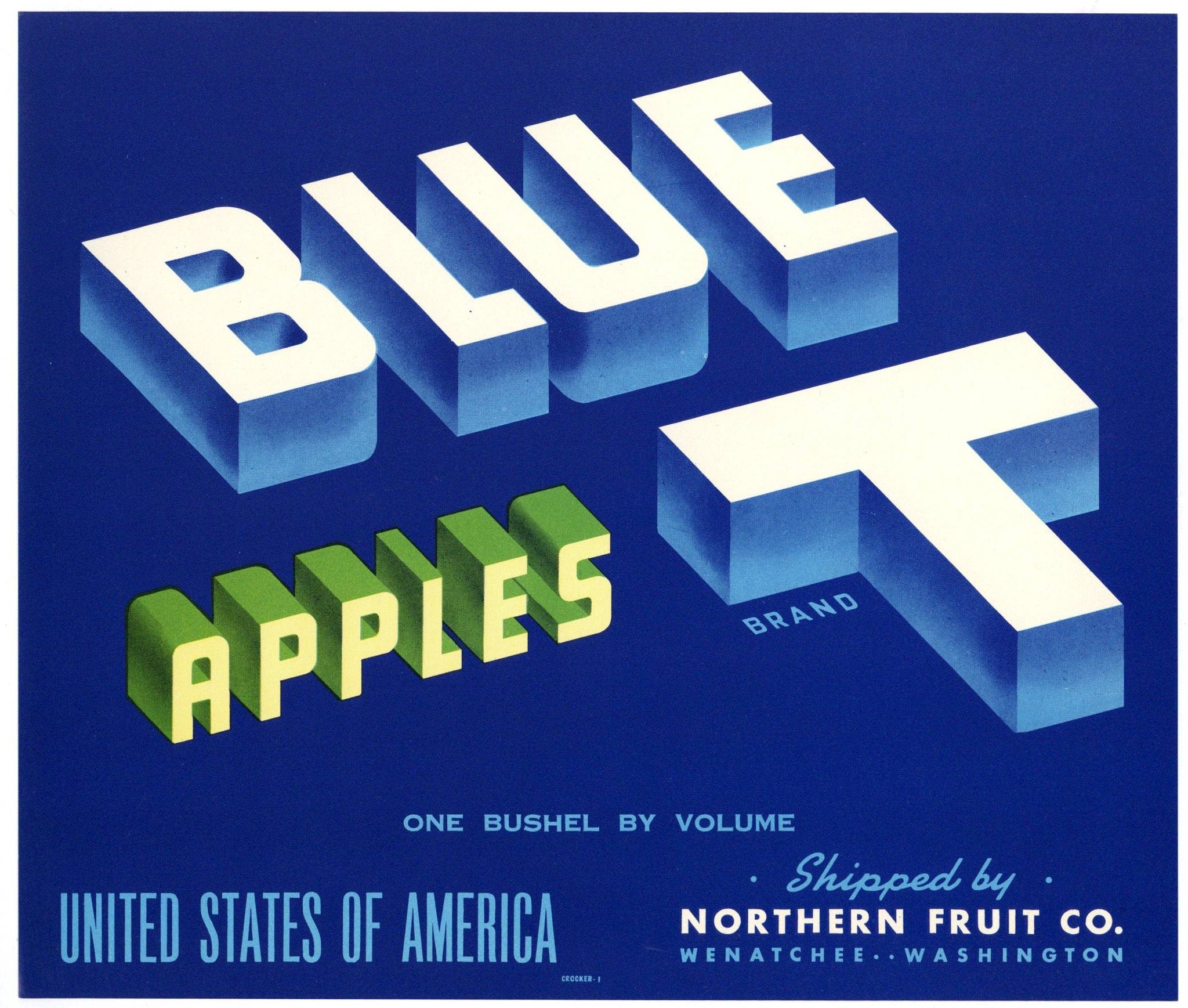 Blue T Brand Vintage Wenatchee Washington Apple Crate Label