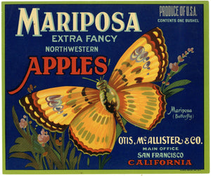 Lady Apples Brand Vintage Tuolumne County California Apple Crate Label, stock