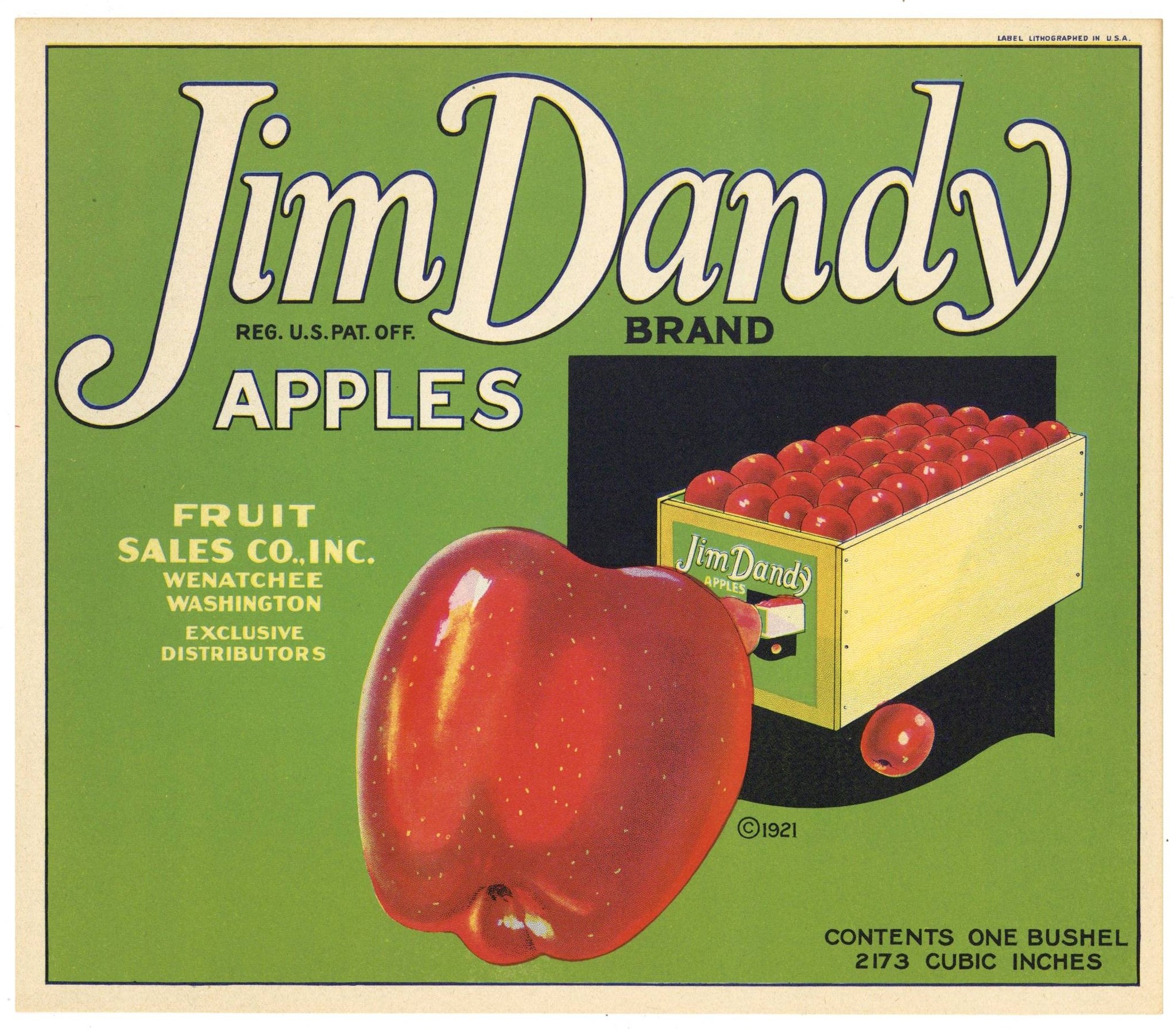Jim Dandy Brand Vintage Wenatchee Washington Apple Crate Label, variant