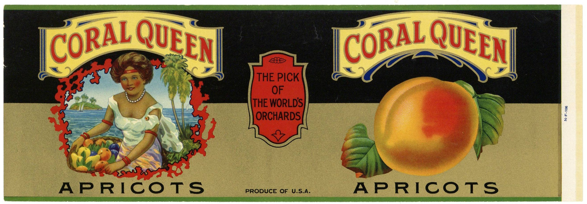 Coral Queen Brand Vintage Cling Peach Can Label, recent