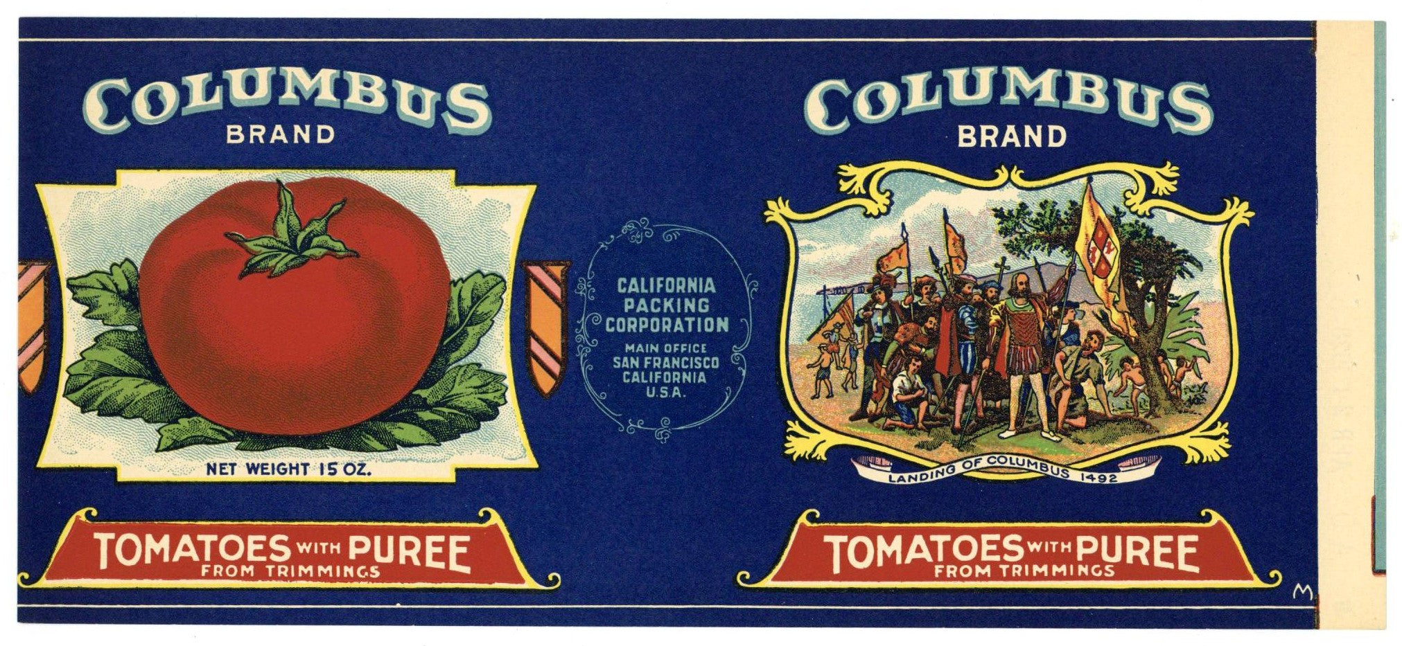 Columbus Brand Vintage California Tomato Can Label, earlier
