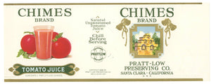 Chimes Brand Vintage Santa Clara California Tomato Juice Can Label