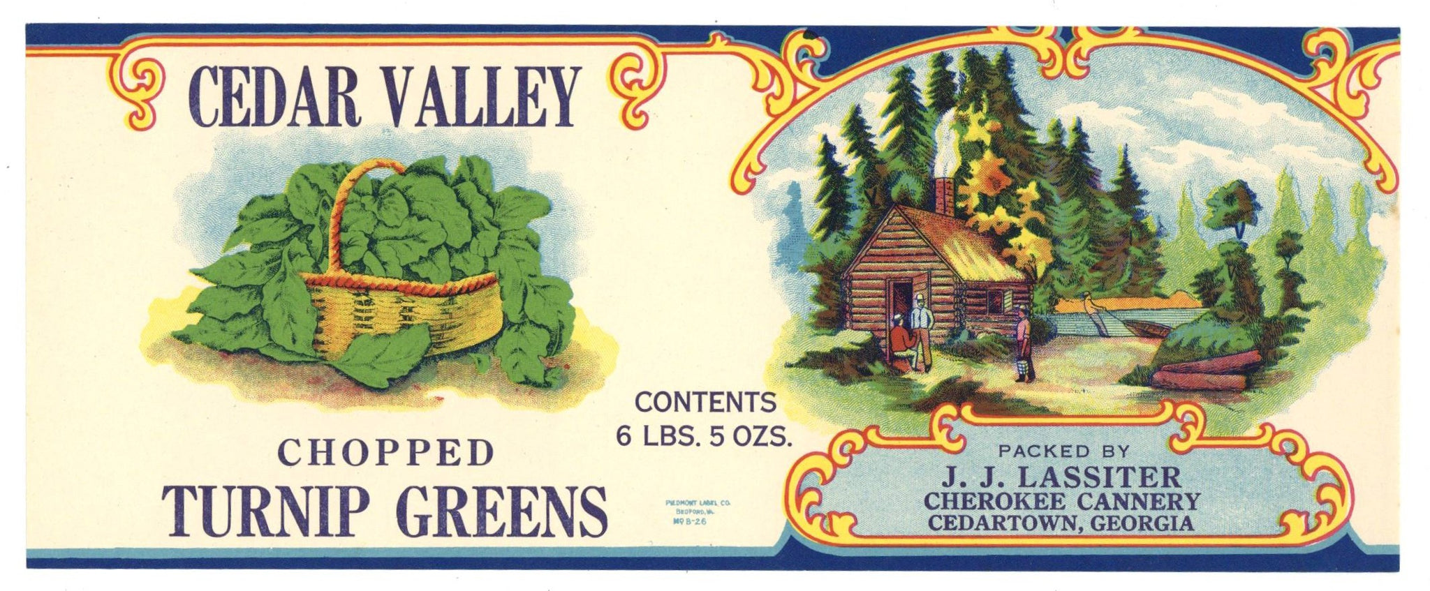 Cedar Valley Brand Vintage Georgia Turnip Greens Can Label