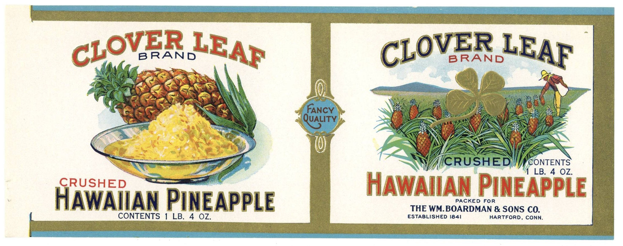 Clover Leaf Brand Vintage Hartford, Connecticut Hawaiian Pineapple Can Label