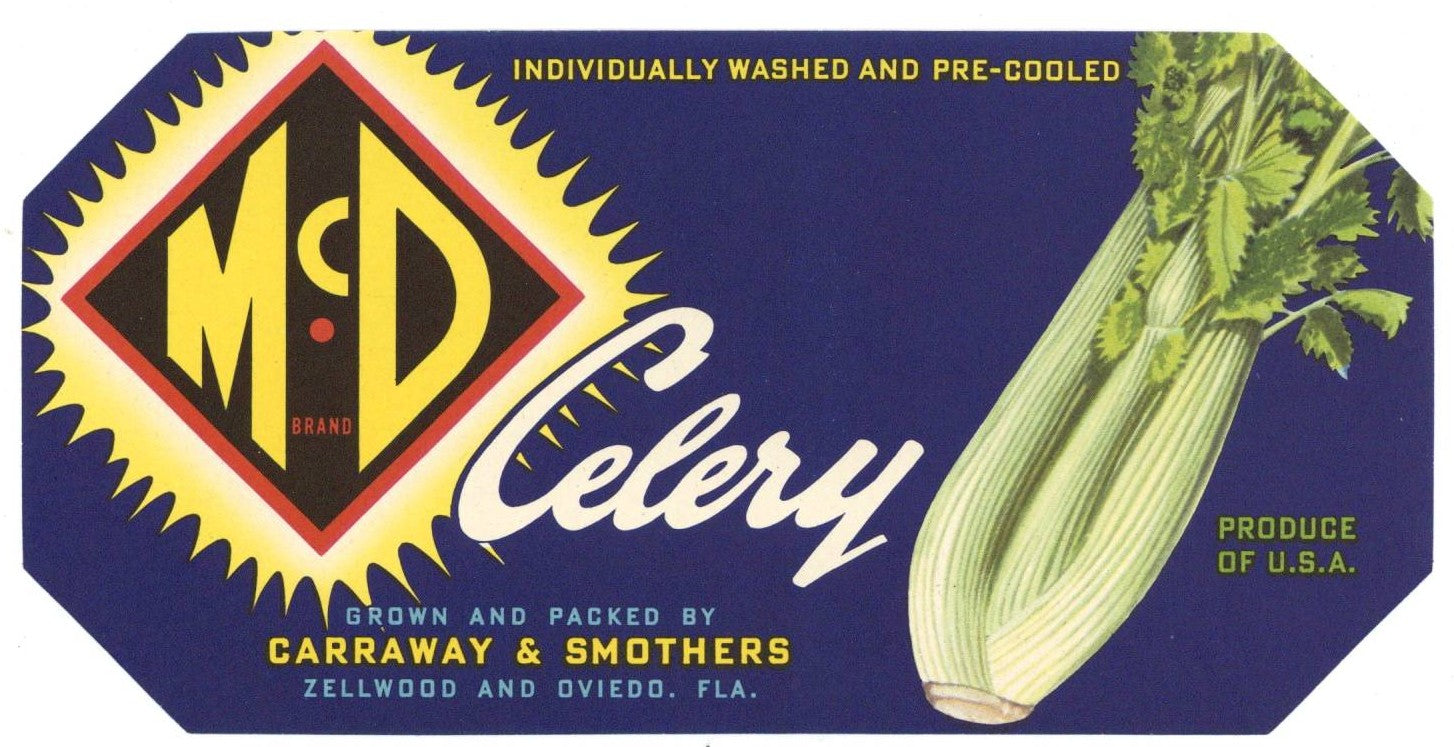 MCD Brand Vintage Zellwood and Oviedo Florida Vegetable Crate Label