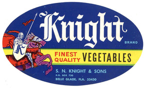 Knight Brand Vintage Belle Glade Florida Vegetable Crate Label, oval