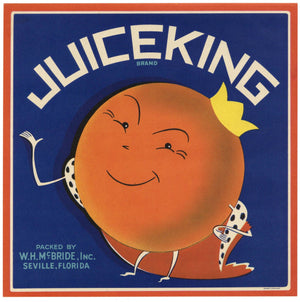 Juice King Brand Vintage Seville Florida Citrus Crate Label, L