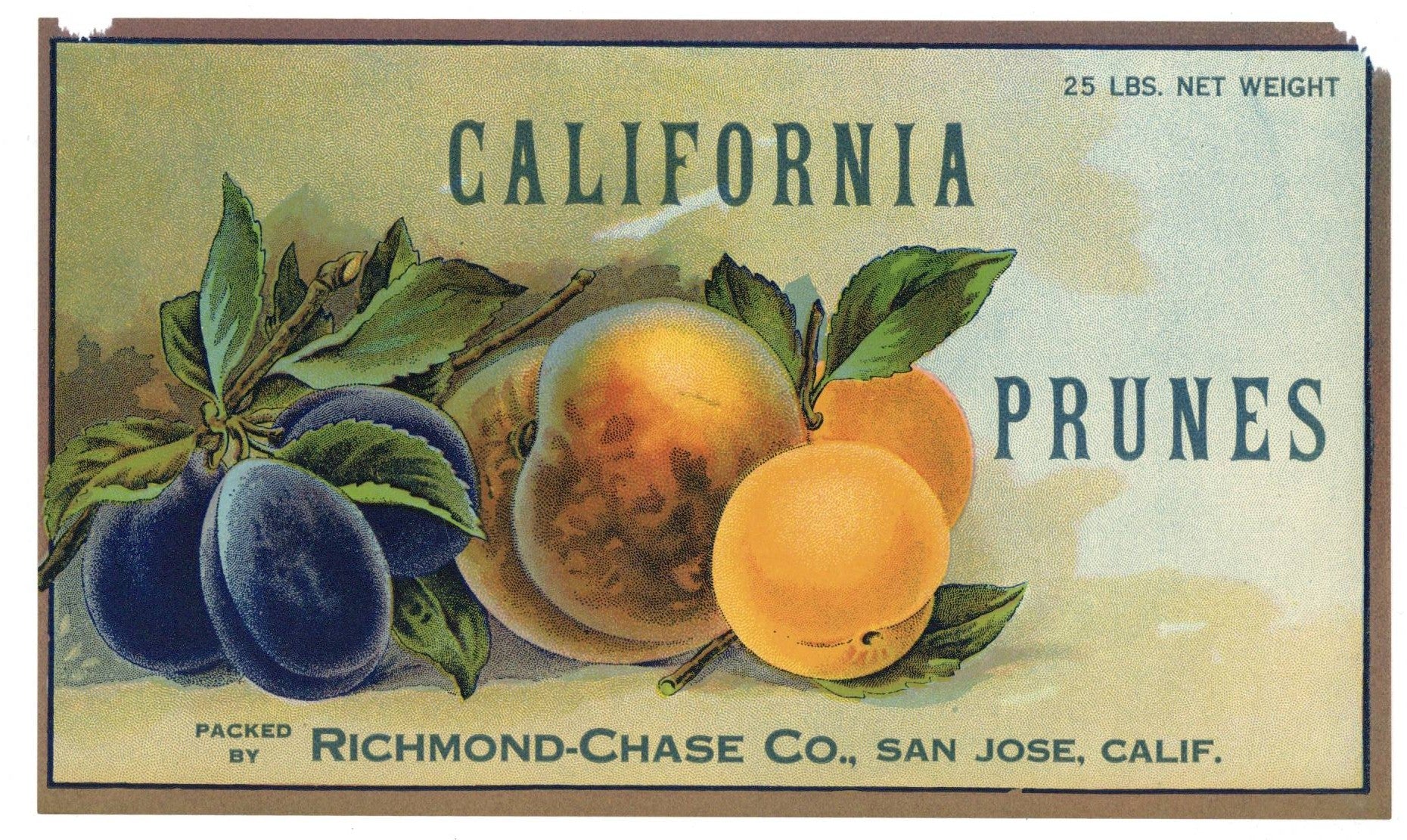 California Prunes Brand Vintage San Jose Dried Fruit Case Label