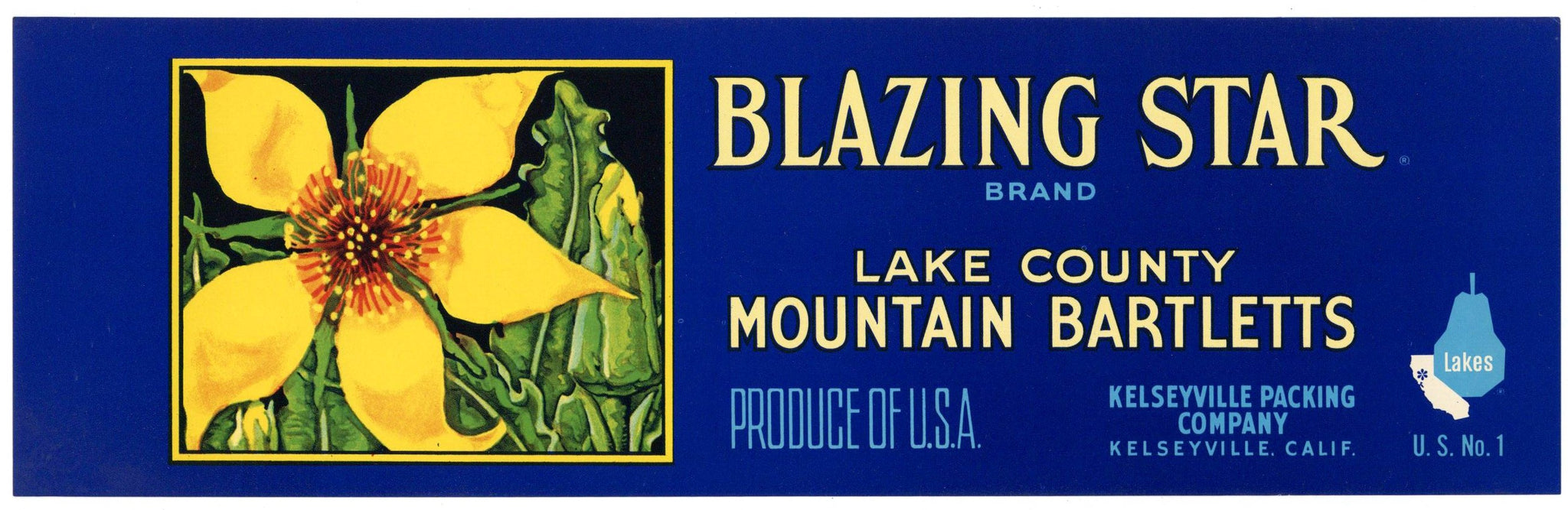 Blazing Star Brand Vintage Lake County California Pear Crate Label, lug