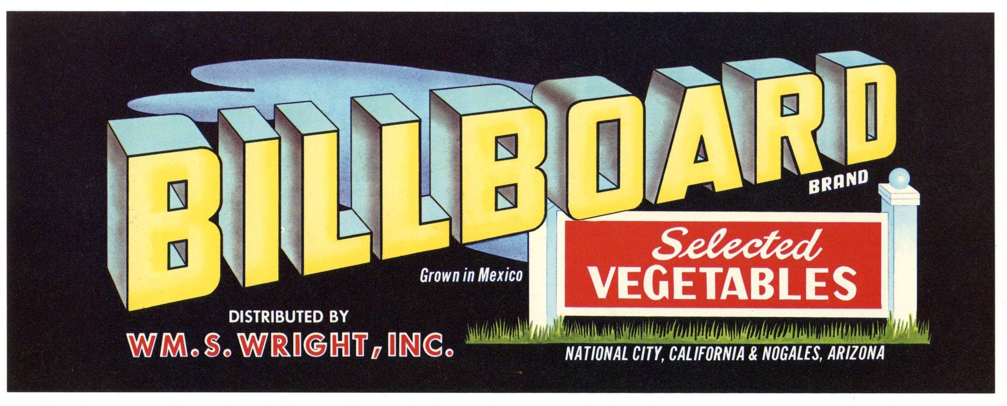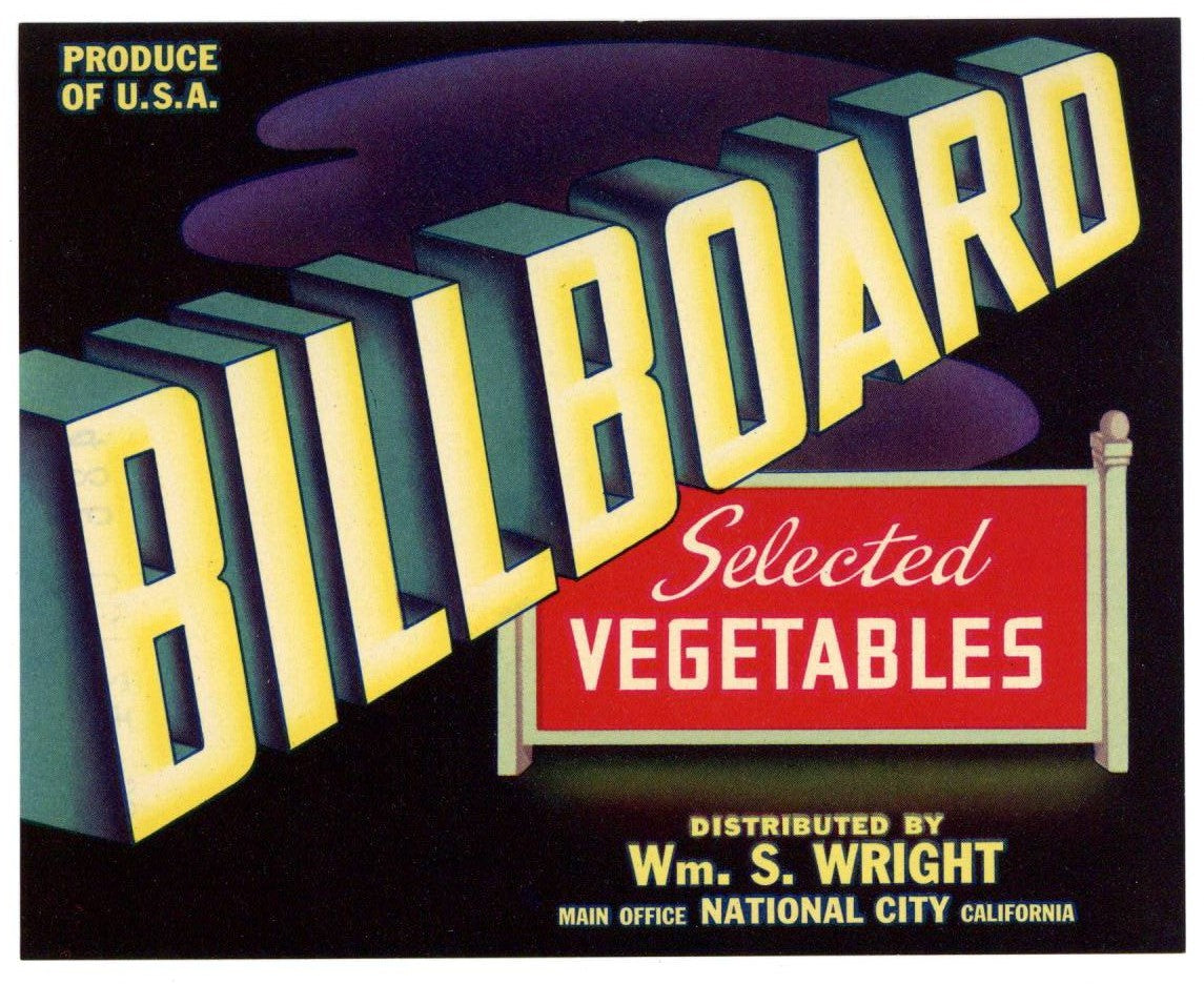 Billboard Brand Vintage National City California Vegetable Crate Label, Wright