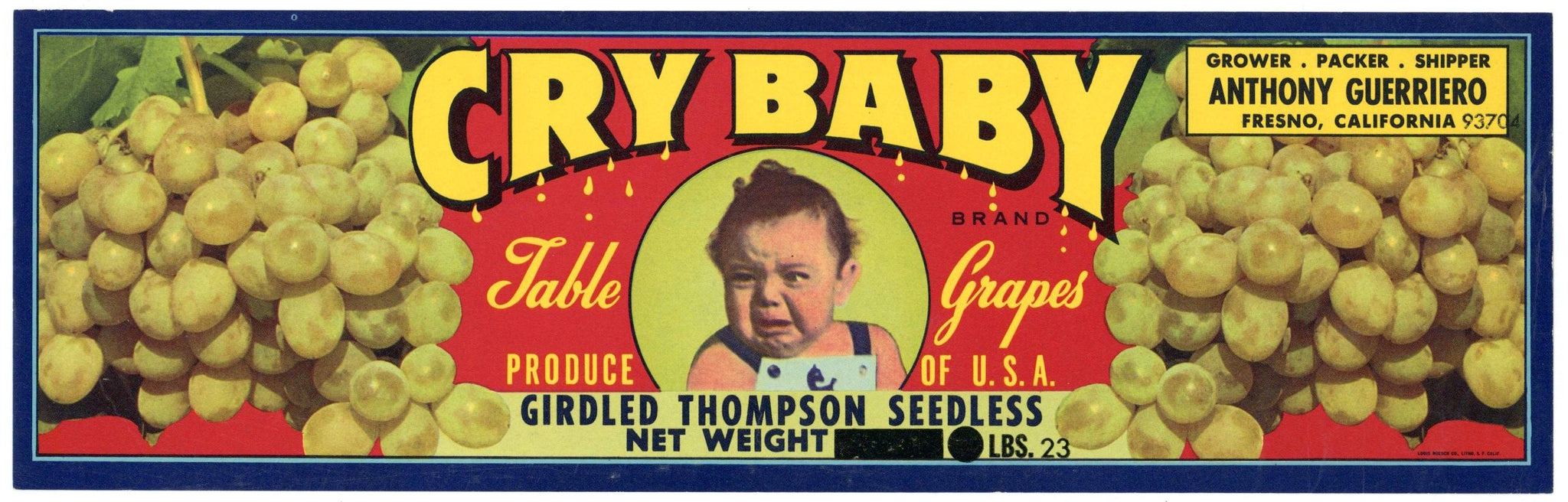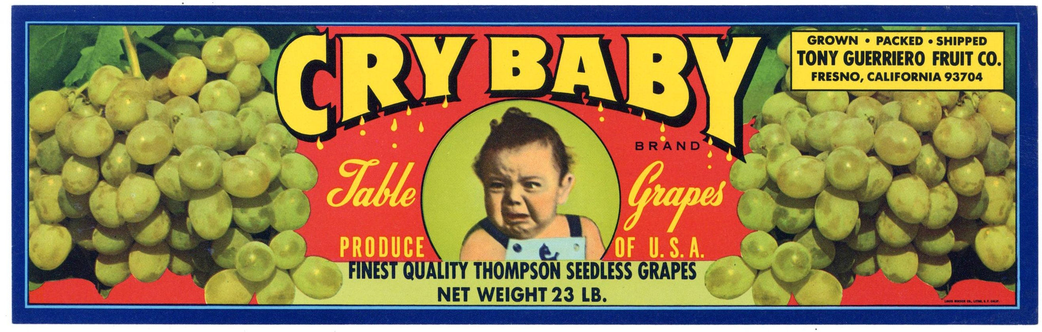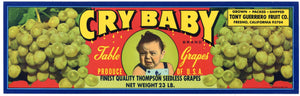 Cry Baby Brand Vintage Thompson Seedless Grape Crate Label