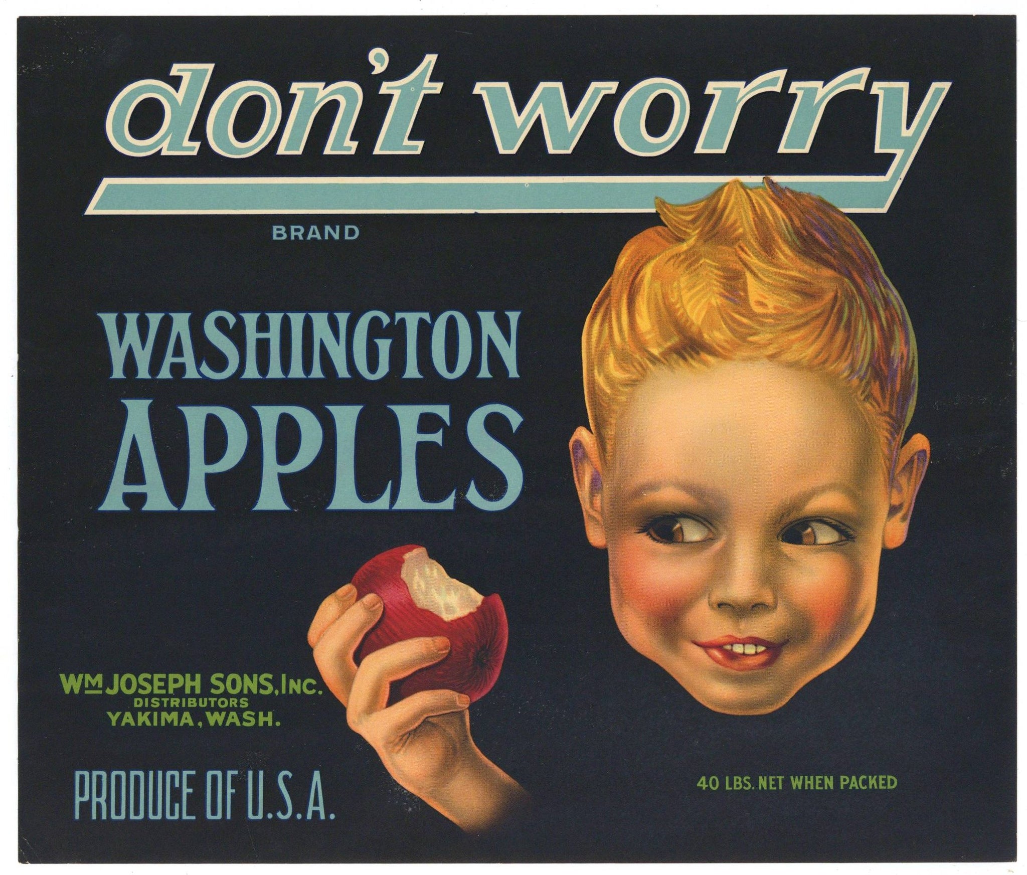 Don't Worry Brand Vintage Yakima Washington Apple Crate Label, WM