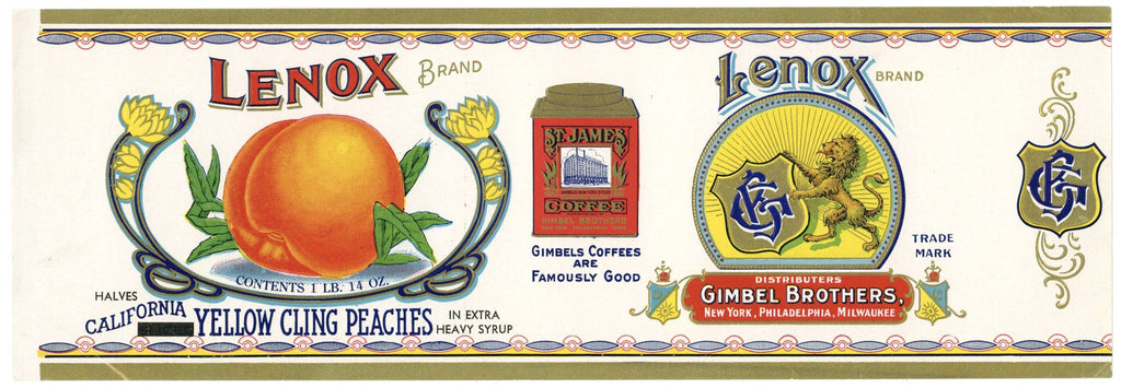 Lenox Brand Vintage Peach Can Label