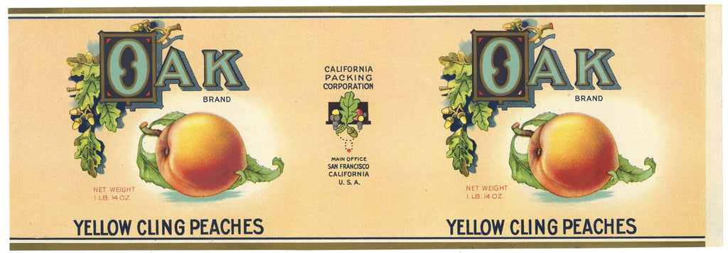 Oak Brand Vintage Yellow Cling Peaches Can Label