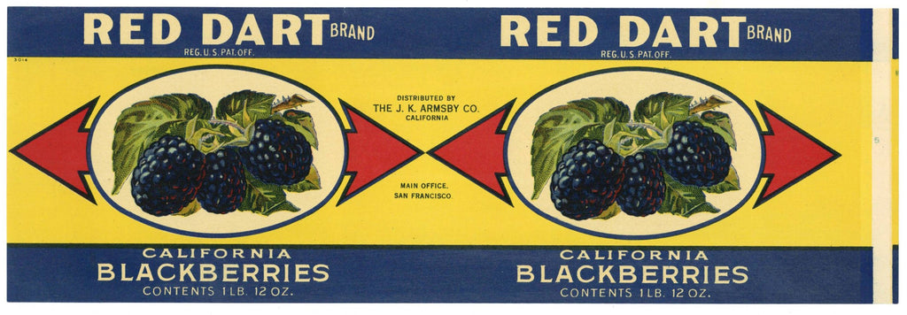 This antique can label was used by The J. K. Armsby Co., headquarters in San Francisco, California.