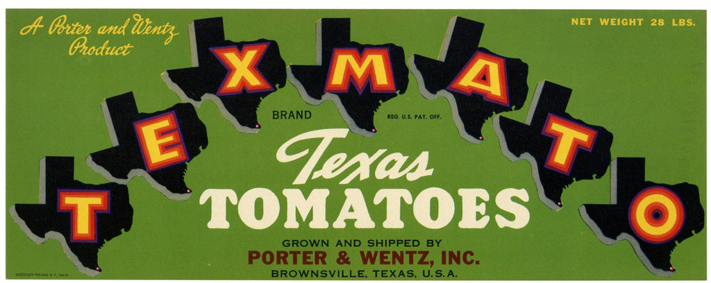 Texmato Brand Vintage Brownsville Texas Tomato Crate Label, green