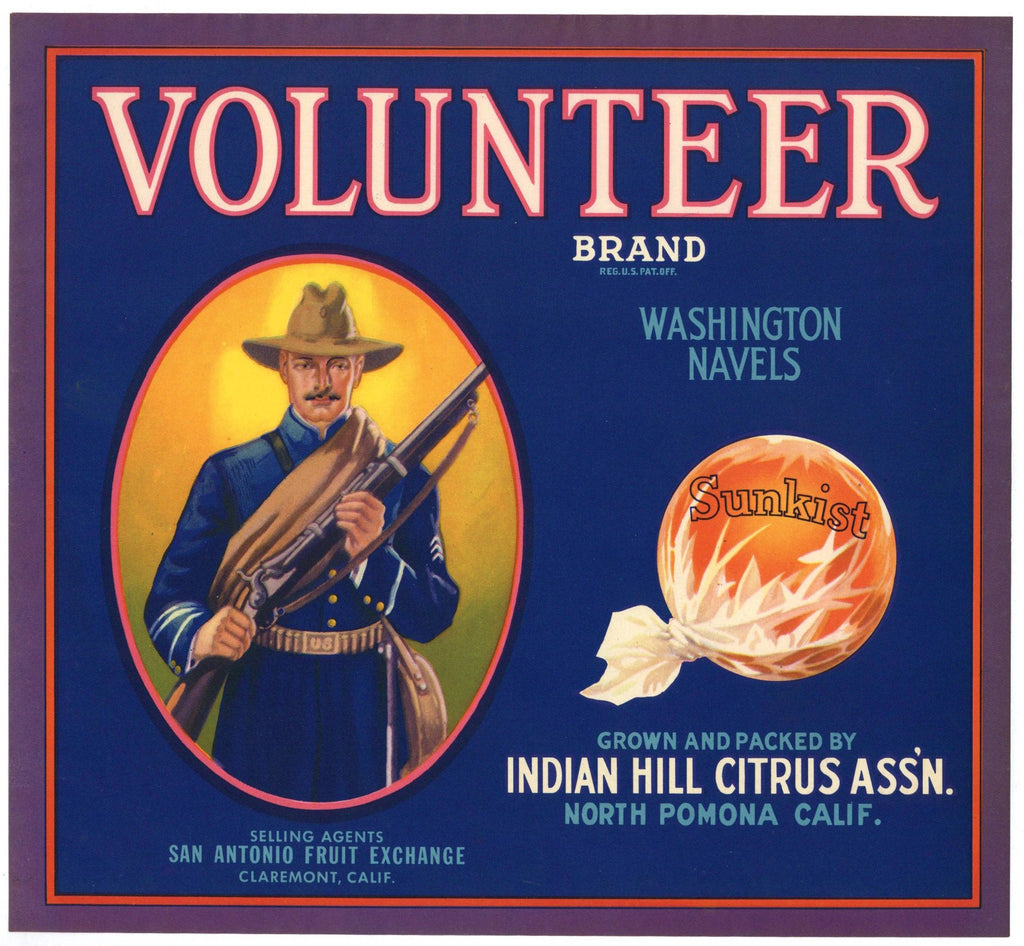 Volunteer Brand Vintage Pomona California Orange Crate Label